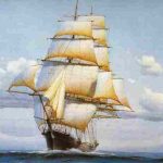 “There was a fine following wind all the way, as both ships (the Black Baller Caledonia) plunged through the seas with every sort of spare sail set to catch the welcome breezes,” writes Robert Albion in Square Riggers on Schedule. “Travelling the celebrated sea lane faster than any packet had yet done, the Columbia was off Sandy Hook by dawn on April 17.”